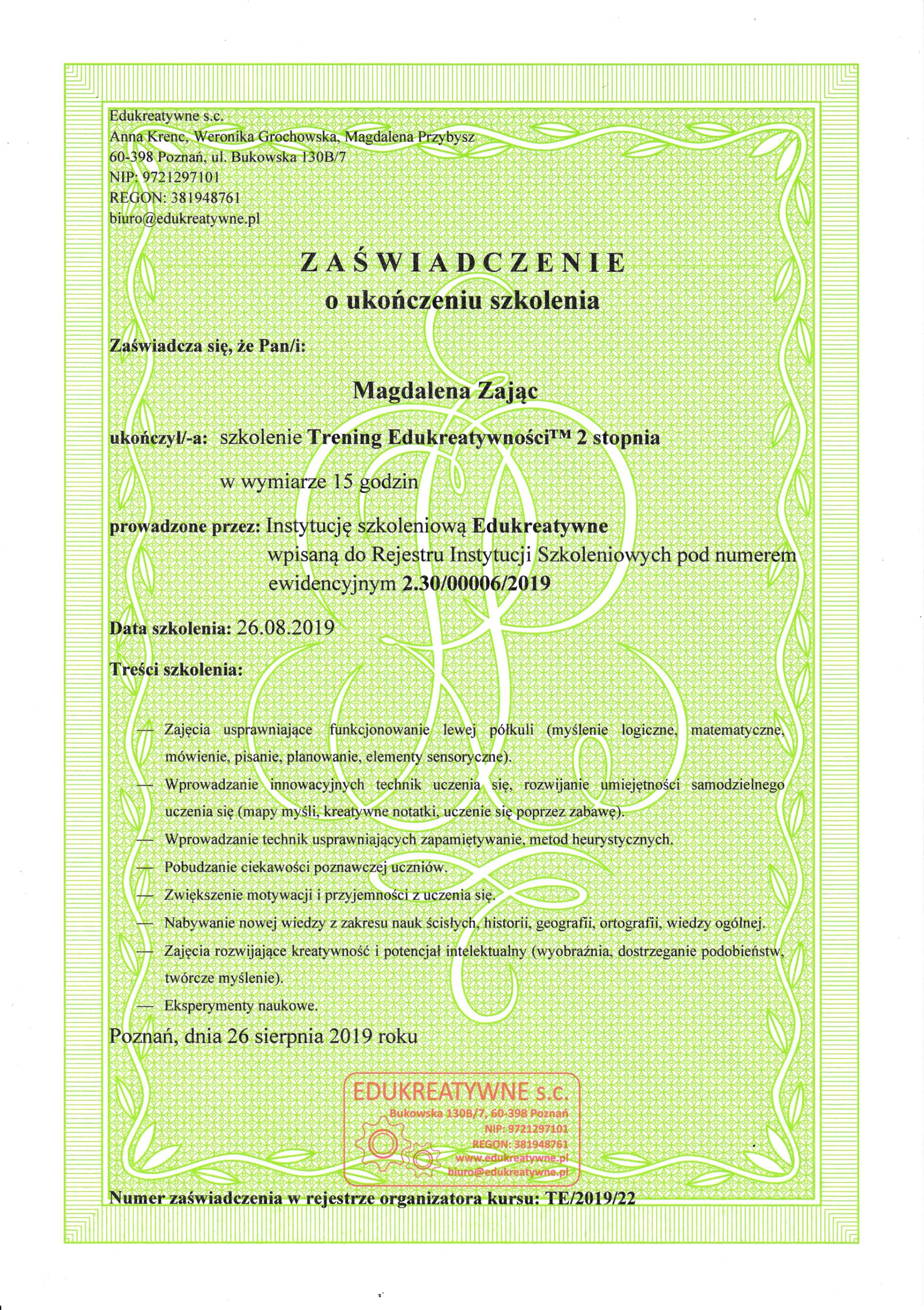 Nazywam się Magdalena Zając i od ponad trzech dekad towarzyszę dzieciom w ich rozwoju, edukacji, emocjonalnych wyzwaniach. Zawsze robię to z pasją, szacunkiem i czułością.